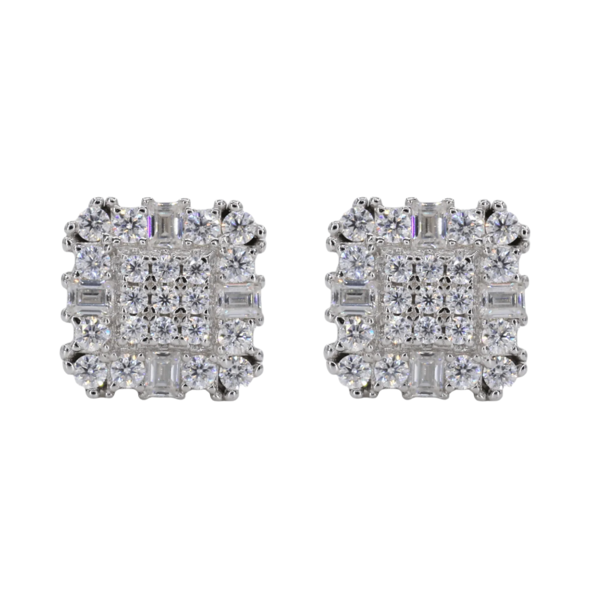Baguette Encrusted Square VVS Moissanite Daimond Earrings