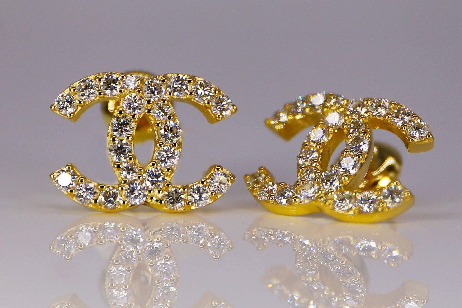 Inspired by Chanel - these handmade and crafted earrings are made with solid gold or silver and feature 1.25 carats of Moissanite diamonds. A glamorous piece with a dazzling sparkle indeed.