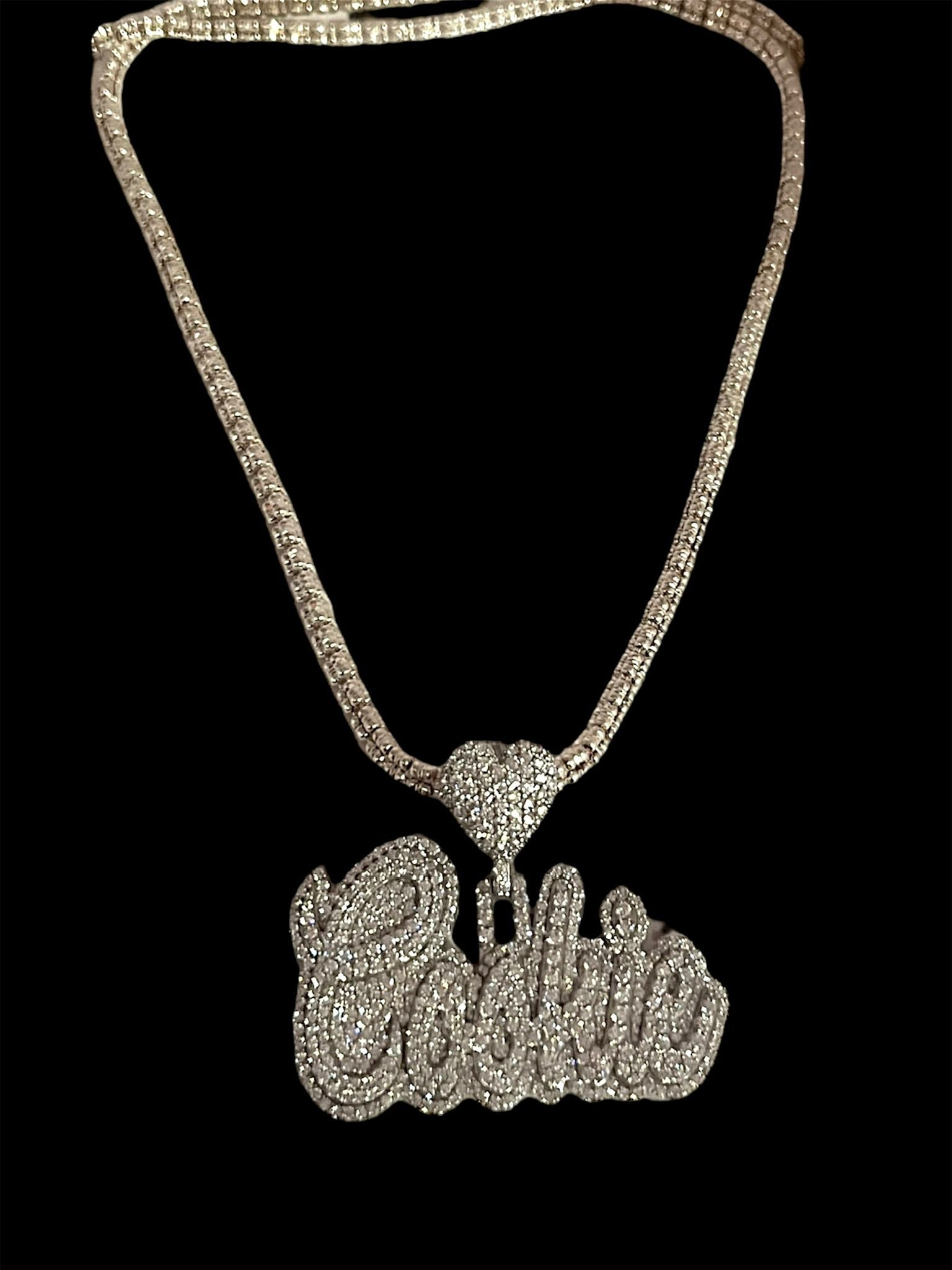 Customizable pendant with a sample image shown for reference. We can personalize the name exactly to your liking, and you can even modify the “BELL” motif if you prefer.